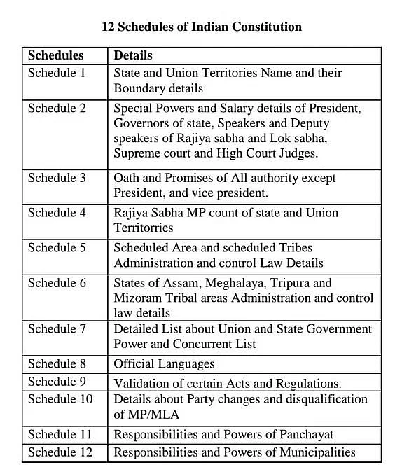 - Four more schedules were added by different amendments, now making a total tally of twelve.