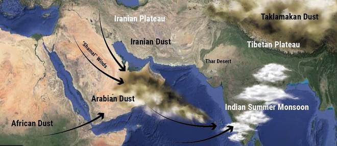 - The researchers also explain how the Indian Summer Monsoon has a reverse effect and can increase the winds in West Asia to produce yet more dust.