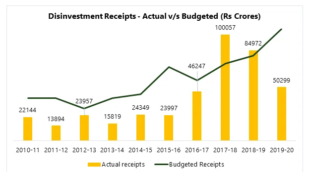 - The targets of the department are set in every Union Budget and may vary every year. Since the 1990s, all the successive governments have been setting a disinvestment target to raise funds by selling a stake in PSUs.