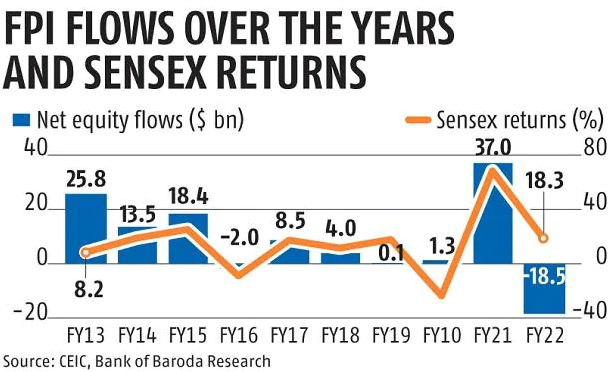 - In the first two months of FY23 (April and May), FPIs have removed a whopping Rs 57,137 crore from the equities market.