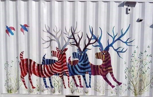 - Colors: Bright colors such as red, yellow, blue, green, etc., are commonly used in Gond art. Natural colors are obtained from charcoal, colored soils, plants, leaves, cow dung, etc. Gond artists are now using synthetic colors such as acrylic colors, poster colors and oil paints as they are readily available in the market.