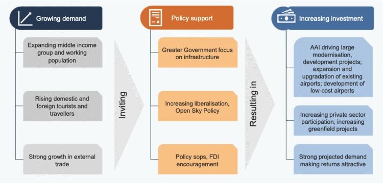 The Indian Government is proactively supporting the aviation sector by providing a stable policy environment and incentivising competition-led growth.