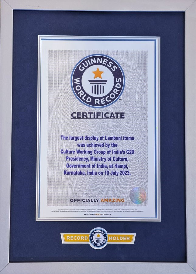 - At the 3rd G20 Culture Working Group, In Hampi, Karnataka, Guinness World Record was set for the largest display of Lambani items.