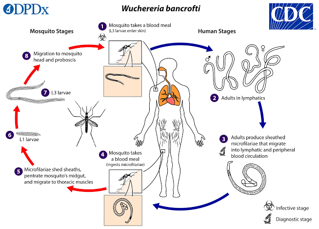 - The proliferation of adult worms disrupts the lymphatic drainage and increases the susceptibility to repeated infections - most notably streptococcal and fungal infections.