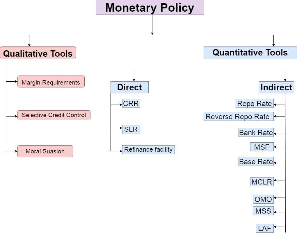- RBI Monetary Policy instruments are divided into two category qualitative instruments and quantitative instruments.