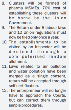 - The rationalization of taxes and duties (for various products from steel and alloys to garments and leather) to favour the domestic manufacturers and boost the MSME sector.
