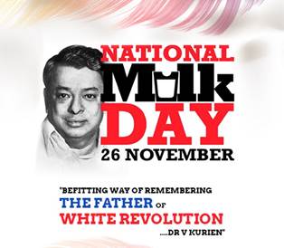 - To highlight the importance of milk and its benefits, National Milk Day is observed on November 26 every year. It is the birth anniversary of Dr. Verghese Kurien is called the Father of the White Revolution.