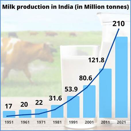 - Despite having the world’s biggest cattle population, the nation generated less than 21 MT of milk annually.