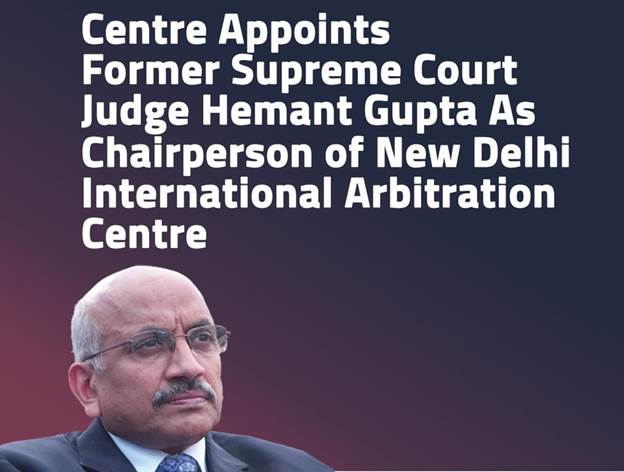 - The Union Government has appointed Justice Hemant Gupta as the Chairperson of the New Delhi International Arbitration Centre (NDIAC).