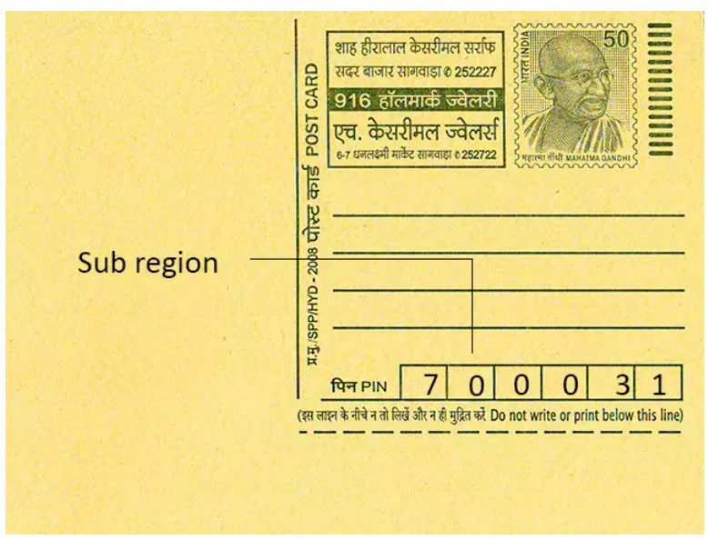 - India is a vast nation with 28 states and least 718 districts. In order to identify regions, Indian postal department has allotted a unique postal code of pin code to each district/village/town to aid delivery of postal services.