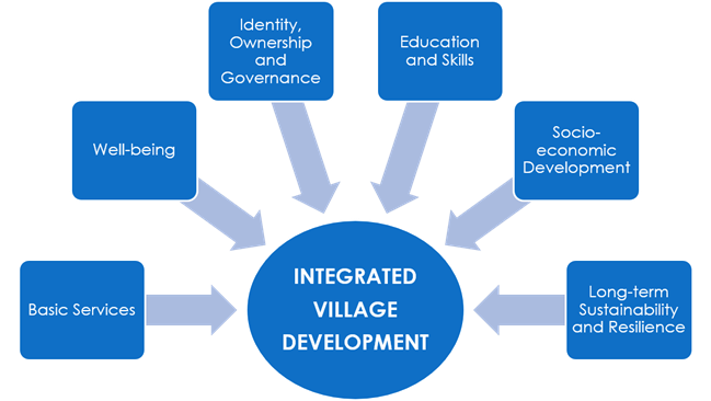 - Vision: Adequate physical and institutional infrastructure, where minimum needs of all sections of the society are fully met. These villages should be covered with all the facilities necessary for a dignified living.
