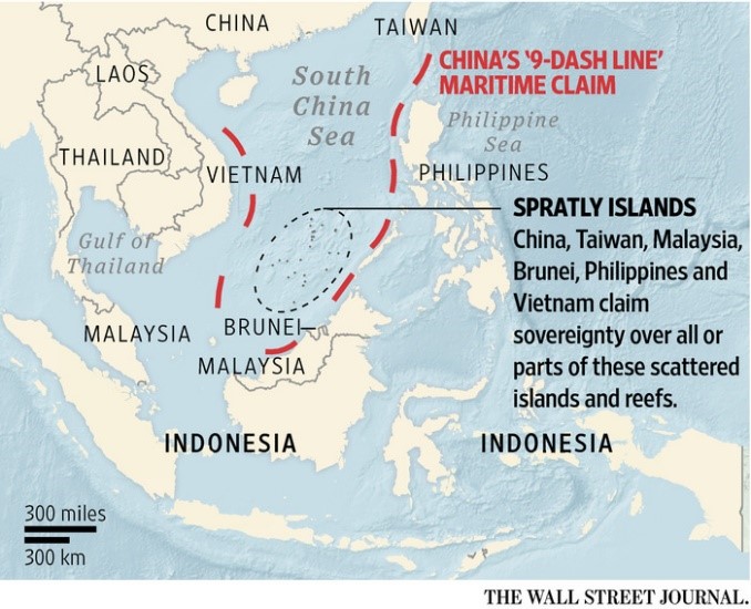 - China claims nearly all of the 3.5-million-square-kilometer South China Sea, which is one of the fiercely contested regions in the world.