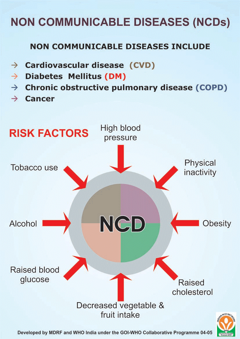- It has identified the four major NCDs — cardiovascular diseases, cancers, chronic respiratory diseases and diabetes. They all share four behavioural risk factors — unhealthy diet, lack of physical activity, and use of tobacco and alcohol.