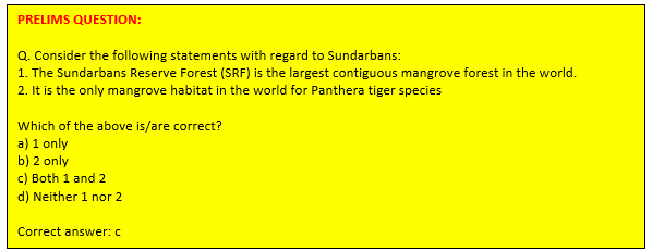 - The Sundarbans Reserve Forest (SRF) is the largest contiguous mangrove forest in the world.