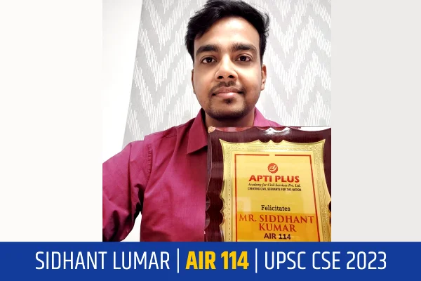 “ I would like to thank APTI PLUS for their guidance in my UPSC preparation. They have helped me through test paper, study material & Interview Guidance Program. I would recommend the same to Aspirants “
