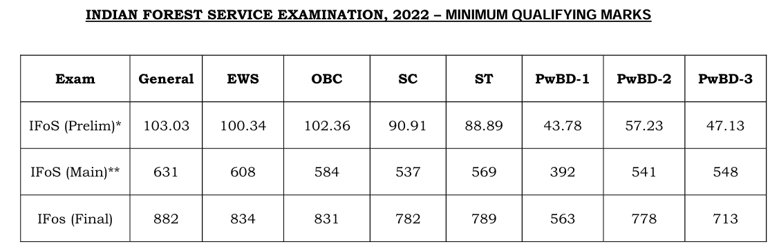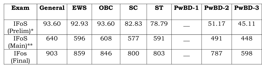 CUT OFF AND FINAL RESULT FOR THE INDIAN FOREST SERVICE EXAMINATION 2023