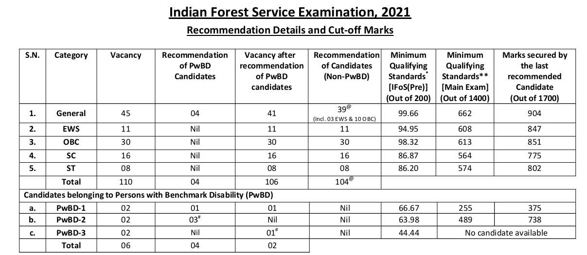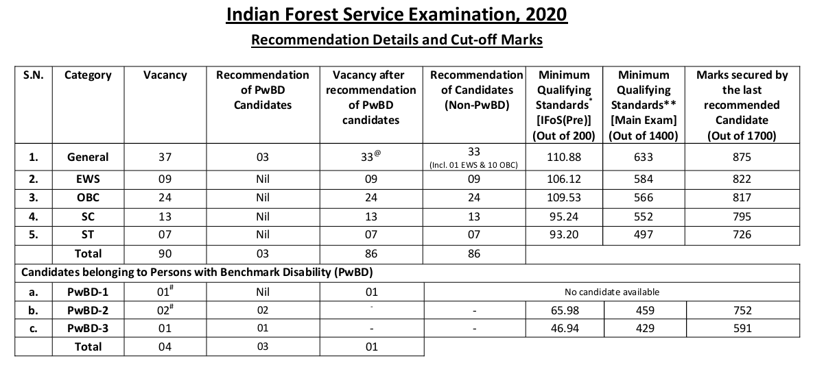 - UPSC IFS Exam 2023 resulted in 147 candidates being recommended for appointment to the Indian Forest Service. These candidates are categorized as follows: