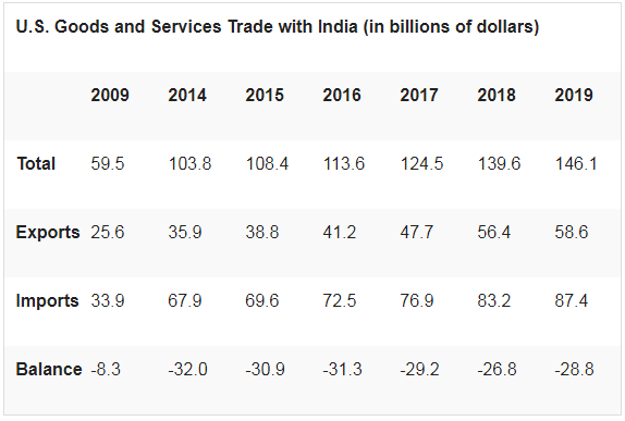 India enjoys a trade surplus with US. The trade gap between the countries has increased to USD 17.42 billion in 2019-20 from USD 16.86 billion in 2018-19. It is one of the concerns of US officials.