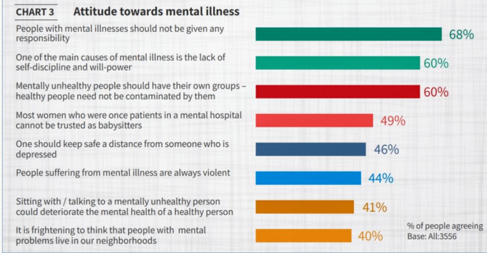 In India, having a mental health disorder is perceived with a sense of judgement and there is stigma associated with those having mental health issues (The Live Love Laugh Foundation, 2018). Mental disorders are also considered as being a consequence of a lack of self-discipline and willpower. The stigma associated with mental health as well as lack of access, affordability, and awareness lead to significant gaps in treatment. The National Mental Health Survey (NMHS), 2015-16 found that nearly 80% of those suffering from mental disorders did not receive treatment for over a year. This survey also identified large treatment gaps in mental healthcare, ranging from 28% to 83% across different mental disorders (National Institute of Mental Health and Neuro-Sciences (NIMHANS), 2016).