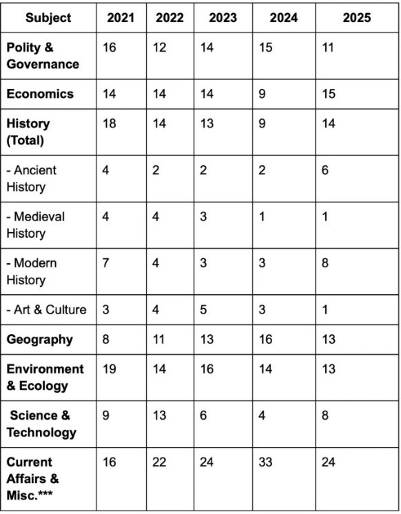 UPSC Prelims Science Questions: Subject-Wise Trend Analysis (2021–2025)