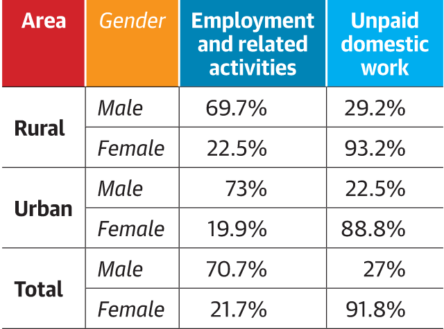 Context: More than 90% of Indian women participated in unpaid domestic work at home in 2019 compared to 27% of men.