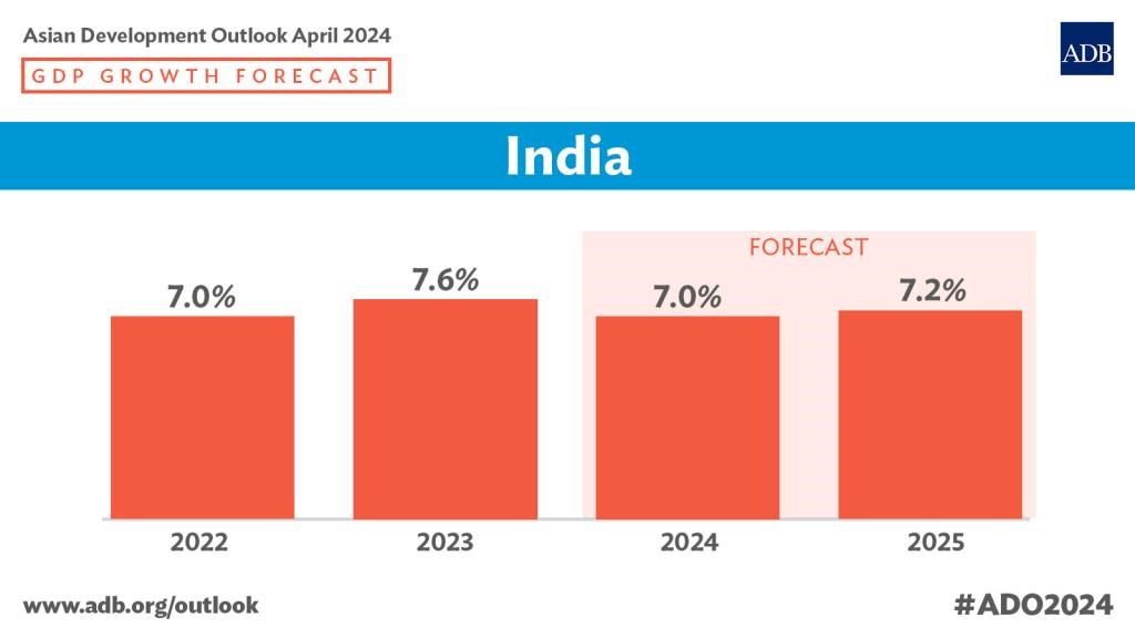 - The Asian Development Bank (ADB) has revised India's GDP growth forecast for FY 2024 to 7% and 7.2% for FY 2025, citing robust public and private investment and a strong services sector.
