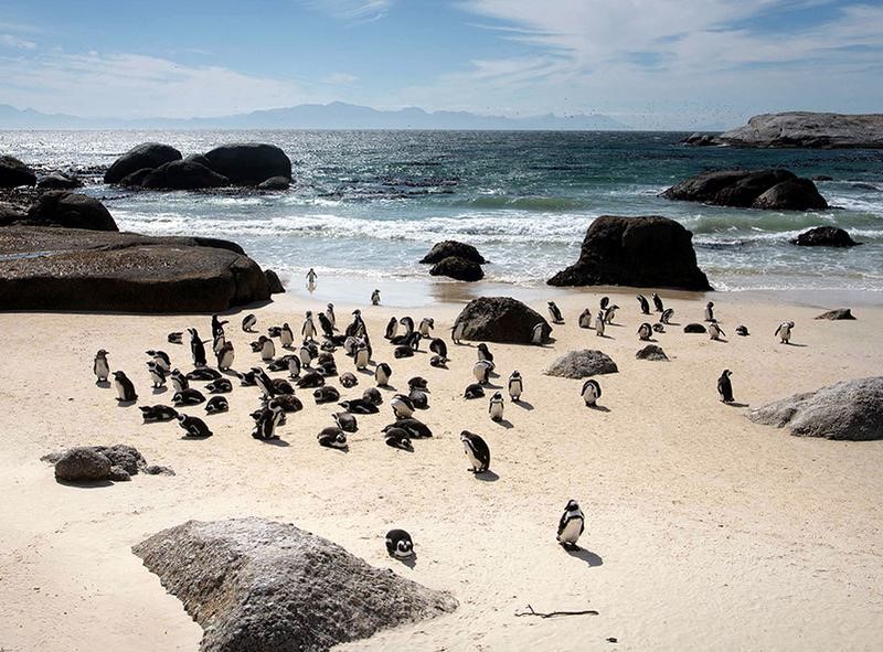 African penguins rest on the beach at the Boulders penguin colony in Simon’s Town, South Africa.