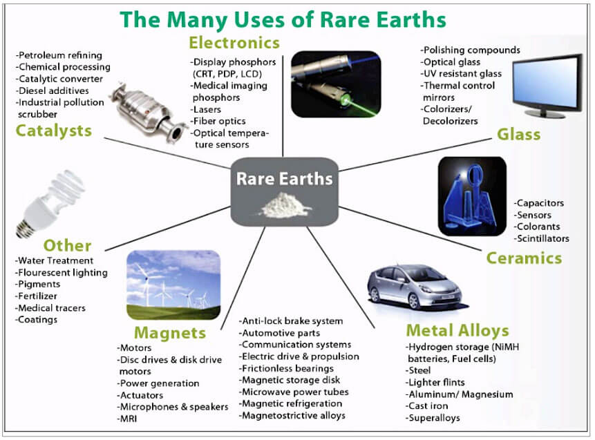 Green Energy: Elements like Neodymium and Dysprosium are vital for permanent magnets used in wind turbines and Electric Vehicle (EV) motors.