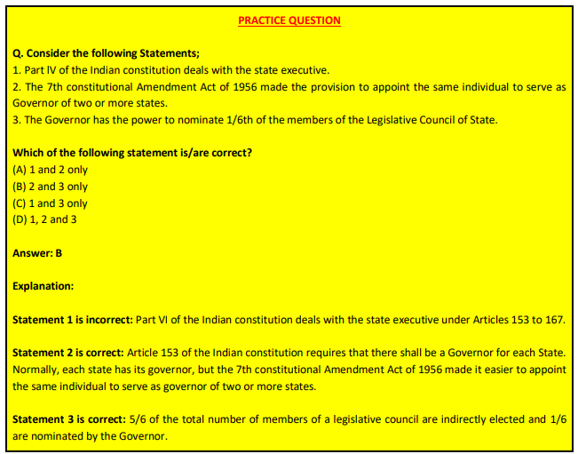 Part VI of the Indian constitution deals with the state executive under Articles 153 to 167.