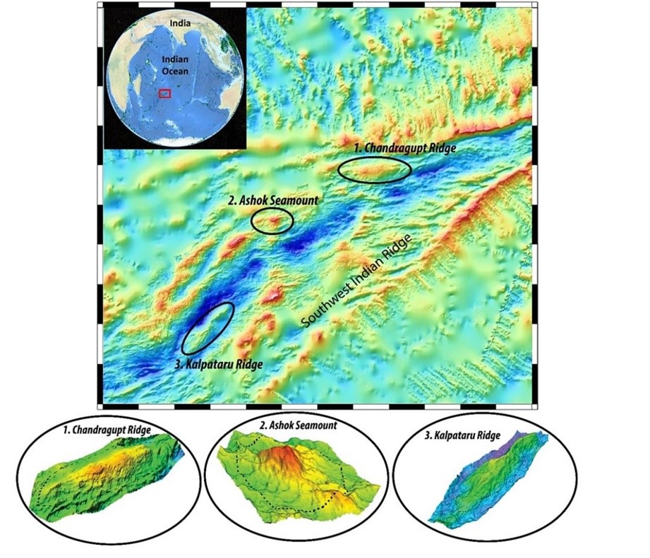 - Kalpataru ridge(430 sq km) and Ashok seamount(180 sqkm): With the help of the Russian Sea vessel Akademik Nikolay Strakhov that the Indian research team discovered both the structures in 2012.