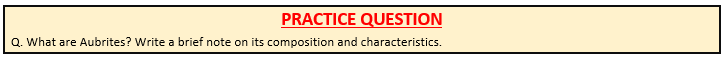 Aubrites are primarily composed of large white crystals of the Fe-poor, Mg-rich orthopyroxene, or enstatite, with minor phases of olivine, nickel-iron metal, and troilite, indicating a magmatic formation under extremely reducing conditions.