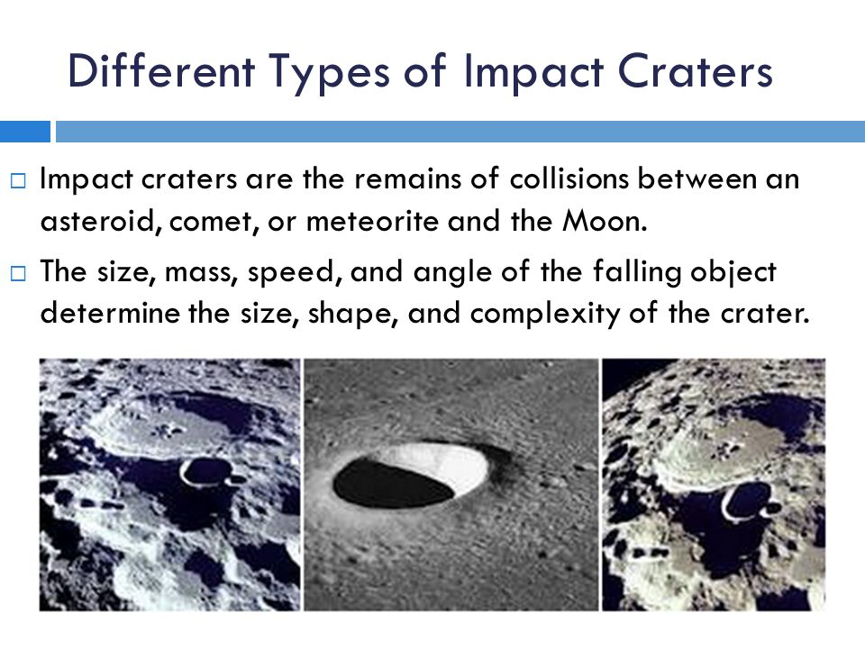 - Impact craters typically have raised rims and lower floors compared to the surrounding terrain. They vary in size from microscopic craters to large multi-ringed basins.