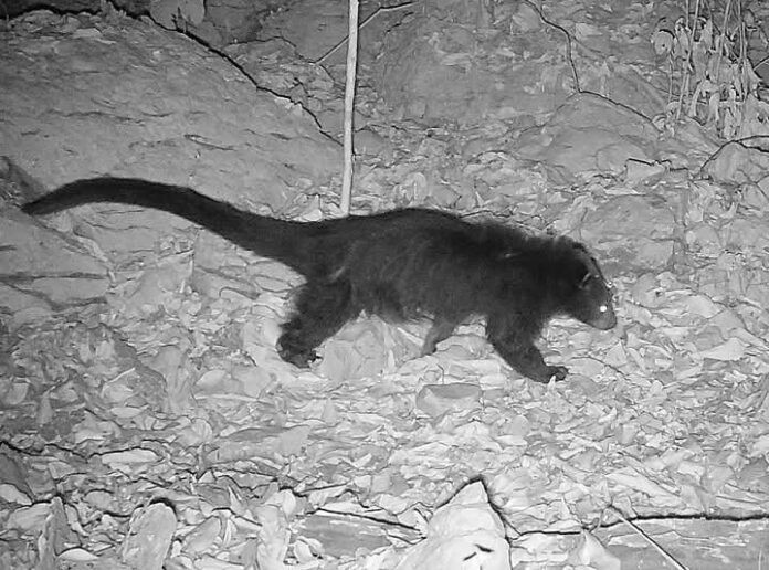 A rare Binturong that is Arctictis binturong was captured on a camera trap in Narang Wari Village Reserve Forest (VRF).