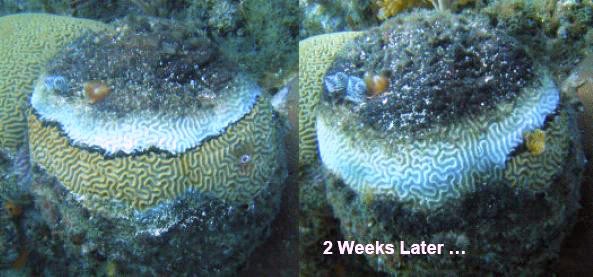 A combination of extreme marine heatwaves and a rare infectious disease, Black Band Disease (BBD) has caused 75% mortality among Goniopora (flowerpot) corals at One Tree Reef, Great Barrier Reef.