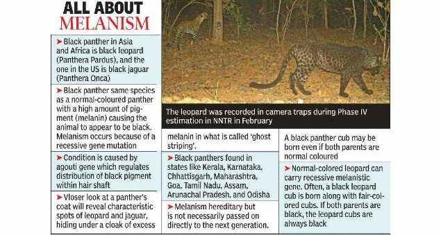- A rare melanistic leopard, popularly called black leopard, was spotted in the the Navegaon Nagzira Tiger Reserve (NNTR) in the Gondia district of Maharashtra.
