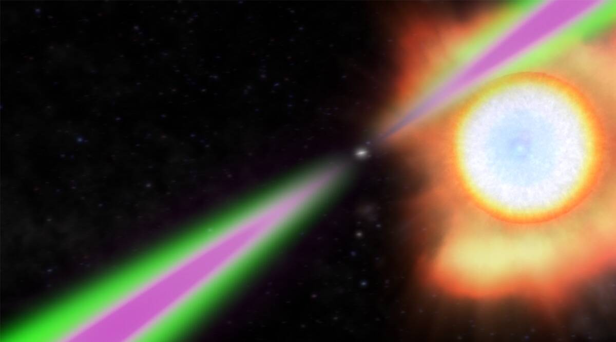 - It appears to be a new black widow binary – a rapidly spinning neutron star or pulsar that is circling and slowly consuming a smaller companion star.