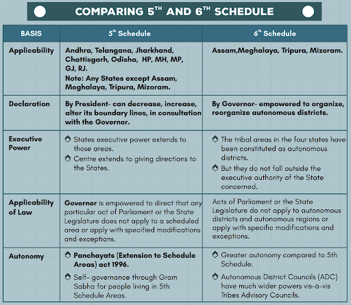 The 6th Schedule applies exclusively to the tribal areas within four states: Assam, Meghalaya, Tripura, and Mizoram. Its goal is to safeguard the cultural identity, land rights, and customs of indigenous tribal communities by granting them a degree of political and administrative autonomy through Autonomous District Councils (ADCs).