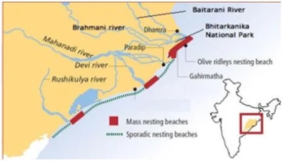 Together with the river Baitarani, it forms a large delta before emptying into the Bay of Bengal at Dhamra.