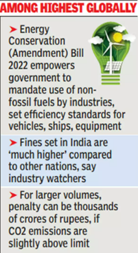 - The clause in the broader Energy Conservation (Amendment) Act 2022 says that a company, if found in violation of fleet emission scores, will have to shell out a fine of Rs 25,000 per car sold. Penalties may run into thousands of crores of rupees for large volumes.