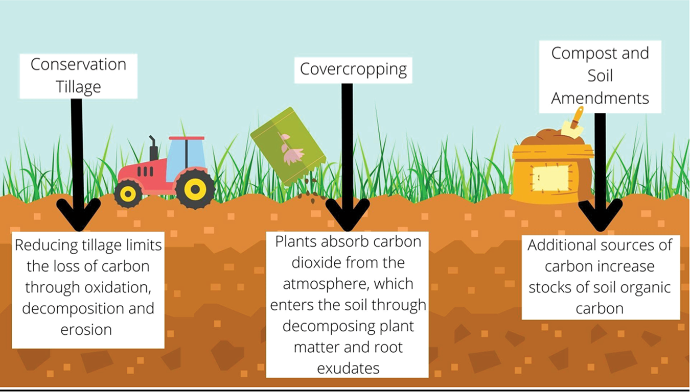 - This strategy emphasizes using organic fertilizers and compost instead of synthetic fertilizers. Organic matter decomposition releases nutrients slowly over time, promoting healthy plant growth and reducing the risk of nutrient leaching into waterways. Additionally, organic fertilizers often contribute to increased soil organic matter content, further enhancing carbon storage.