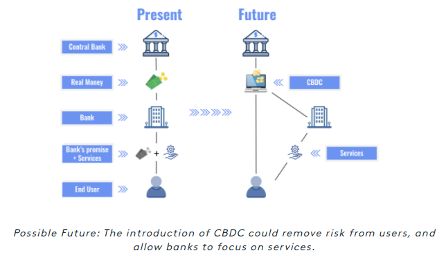 - The need for inter-bank settlement would disappear as it would be a central bank liability handed over from one person to another.