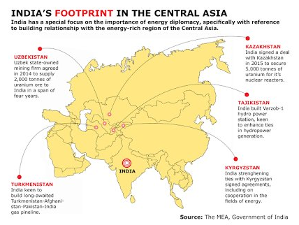 - The region is viewed as Russia’s immediate backyard and Moscow has traditionally maintained a dominant role in relations with Central Asia, China has steadily strengthened its footprint. India has also been pursuing both geopolitical and economic ties with the region.