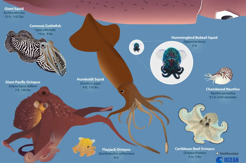 This includes the coleoids - cuttlefish, octopuses, and squid - and the chambered nautilus.