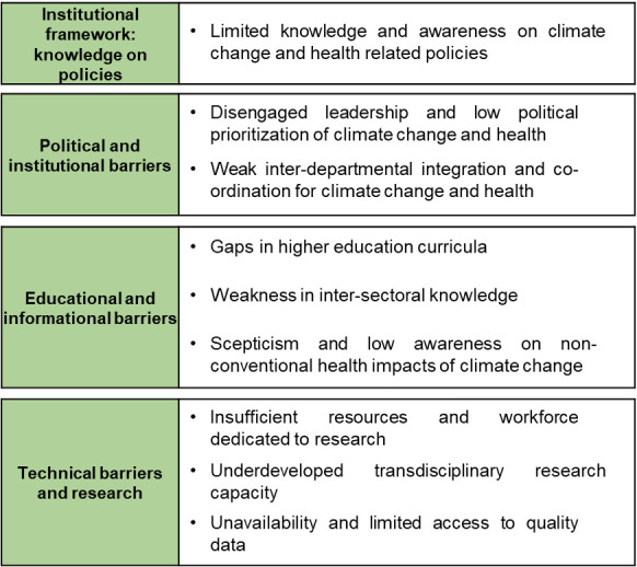Low political priority: Climate-health issues are overshadowed by more immediate economic goals, leading to inadequate funding and attention from top officials.