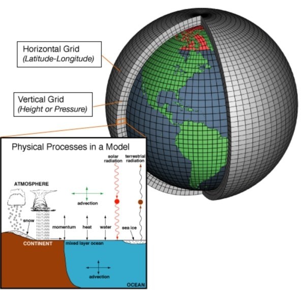 - Modern climate models divide the Earth into a three-dimensional grid, consisting of small “cells” that represent sections of land, air, or water.