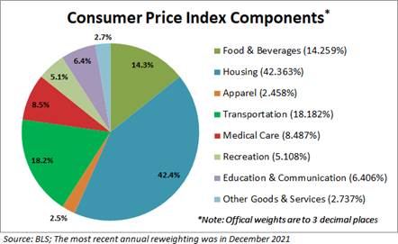 - CPI is calculated for a fixed list of items including food, housing, apparel, transportation, electronics, medical care, education, etc. The price data is collected periodically, and thus, the CPI is used to calculate the inflation levels in an economy.