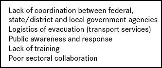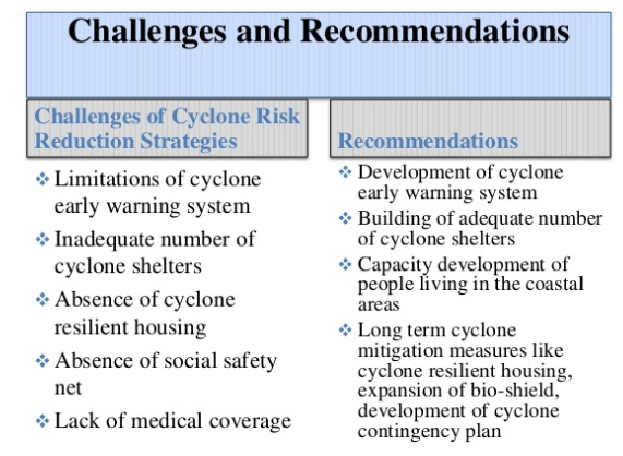 - Communication issues:Information and Cyclone warnings are not properly disseminated between the concerned agencies. This results in delayed efforts as was evident in Ockhi cyclone disaster.