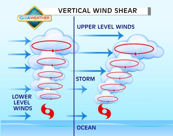 - sufficiently warm sea surface temperatures (higher than 26º C),