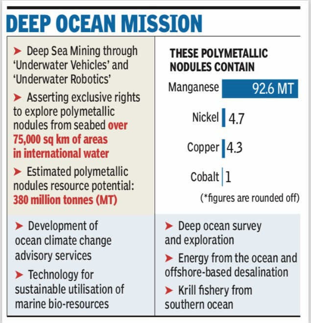 Context: The Union Cabinet has approved the long pending Deep Ocean Mission.