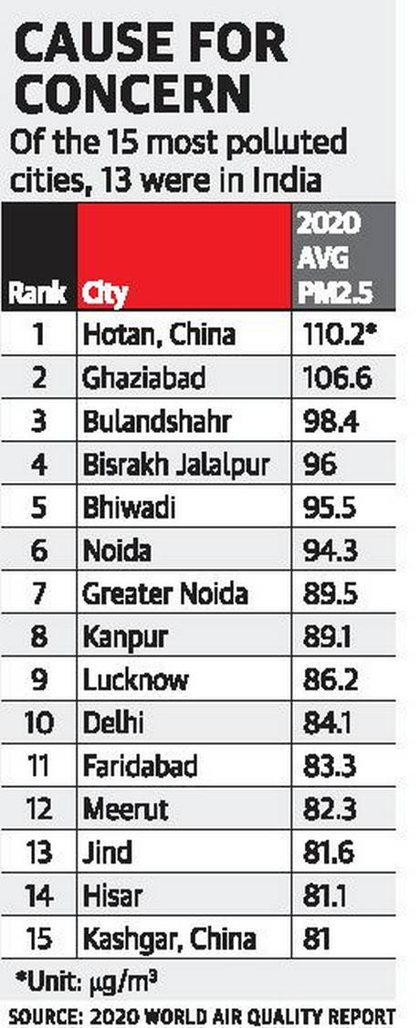 Context: Delhi remained the most polluted capital city in the world but India, on the whole, had improved its average annual PM2.5 (particulate matter) levels in 2020 than in 2019, according to a report from IQ Air.